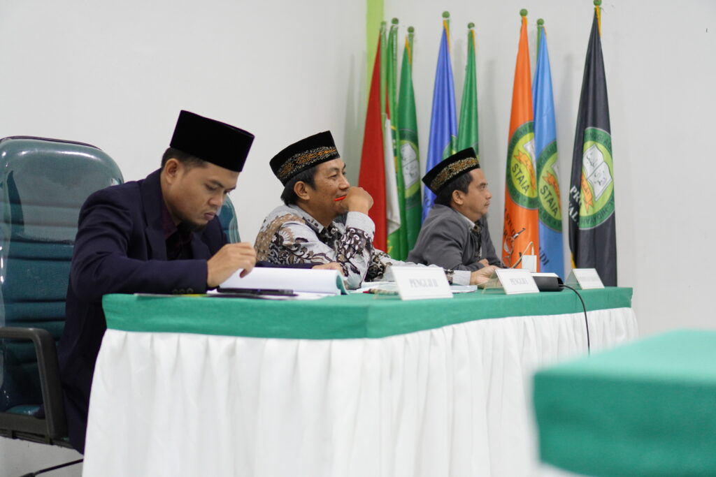 Sidang munaqosyah ini berlangsung dengan didampingi oleh dua dosen pembimbing, yaitu Dr. Muslim, S.Pd.I., M.M. dan Dr. Arijulmanan, S.S., M.H.I. Sementara itu, tim penguji terdiri dari Dr. Fachri Fachrudin, M.E.I. dan M. Hidayat, S.H.I., M.H. yang menilai serta memberikan masukan terhadap penelitian yang dilakukan.